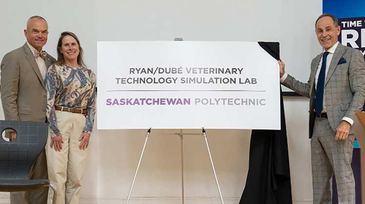 Saskatchewan Polytechnic received a $1-million gift from the Heather Ryan and L. David Dubé Foundation to support a simulation lab for the Veterinary Technology program at the new Joseph A. Remai Saskatoon Campus. In recognition of this transformational contribution, Sask Polytech is proud to announce the naming of the Ryan/Dubé Veterinary Technology Simulation Lab.